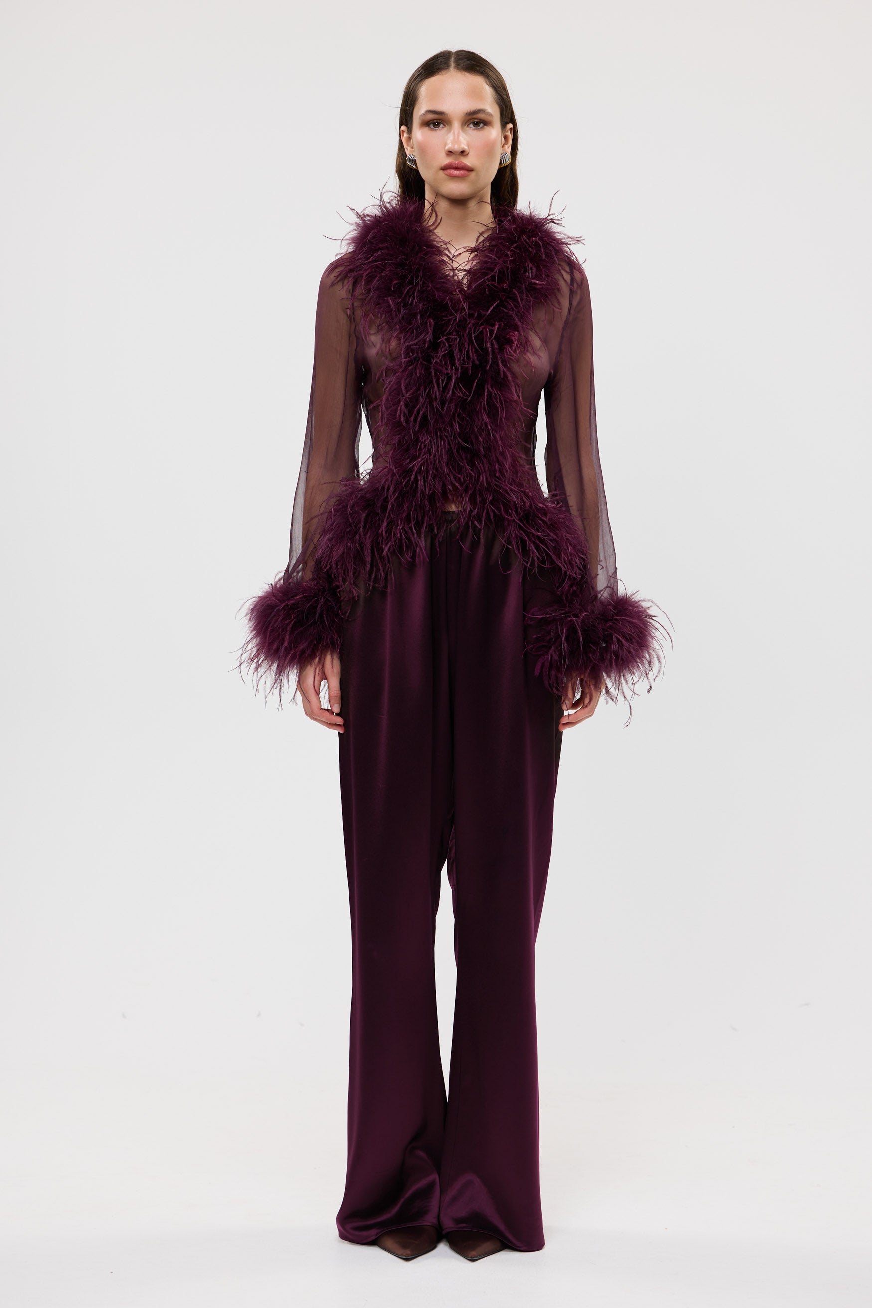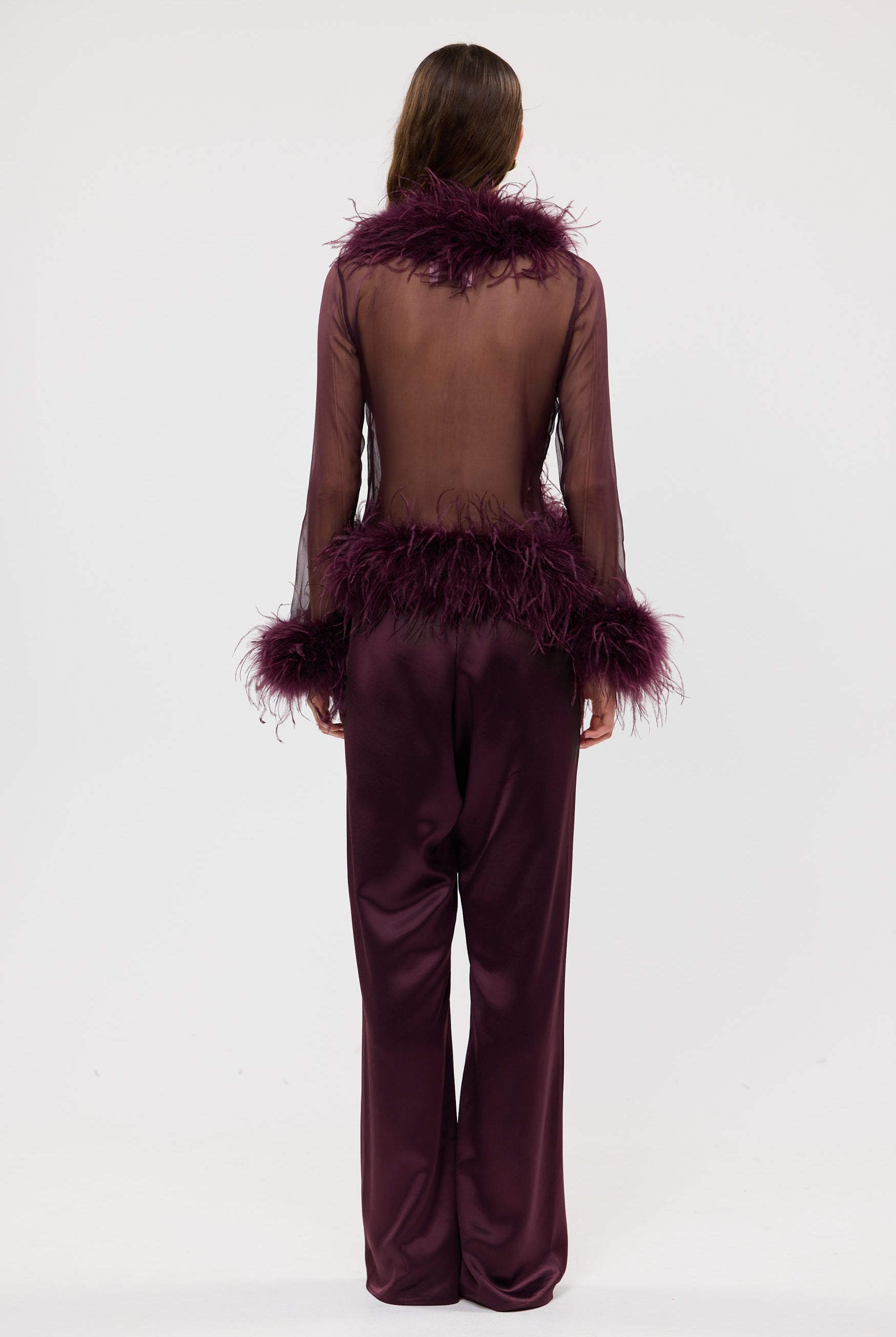 Gigi Sheer Feather Blouse - Plum