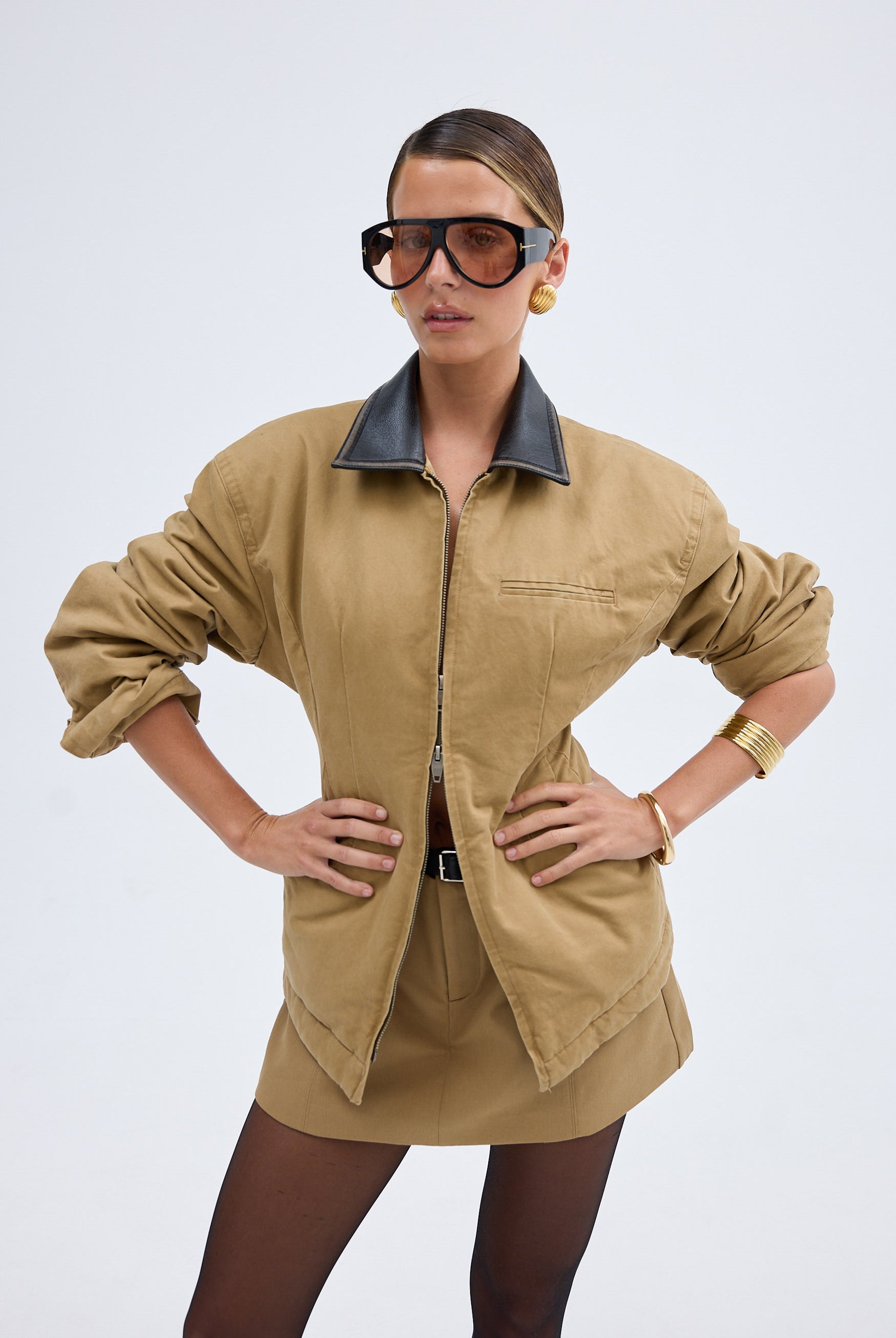 The Olivia Mini Skirt is a modern take on utility tailoring. Designed to sit mid-waist, this structured silhouette features an attached faux leather belt for definition and subtle contrast. Clean lines and a flattering cut make it the perfect partner to the Olivia Jacket, or an effortless standalone piece styled with a cotton tee or staple knit.
