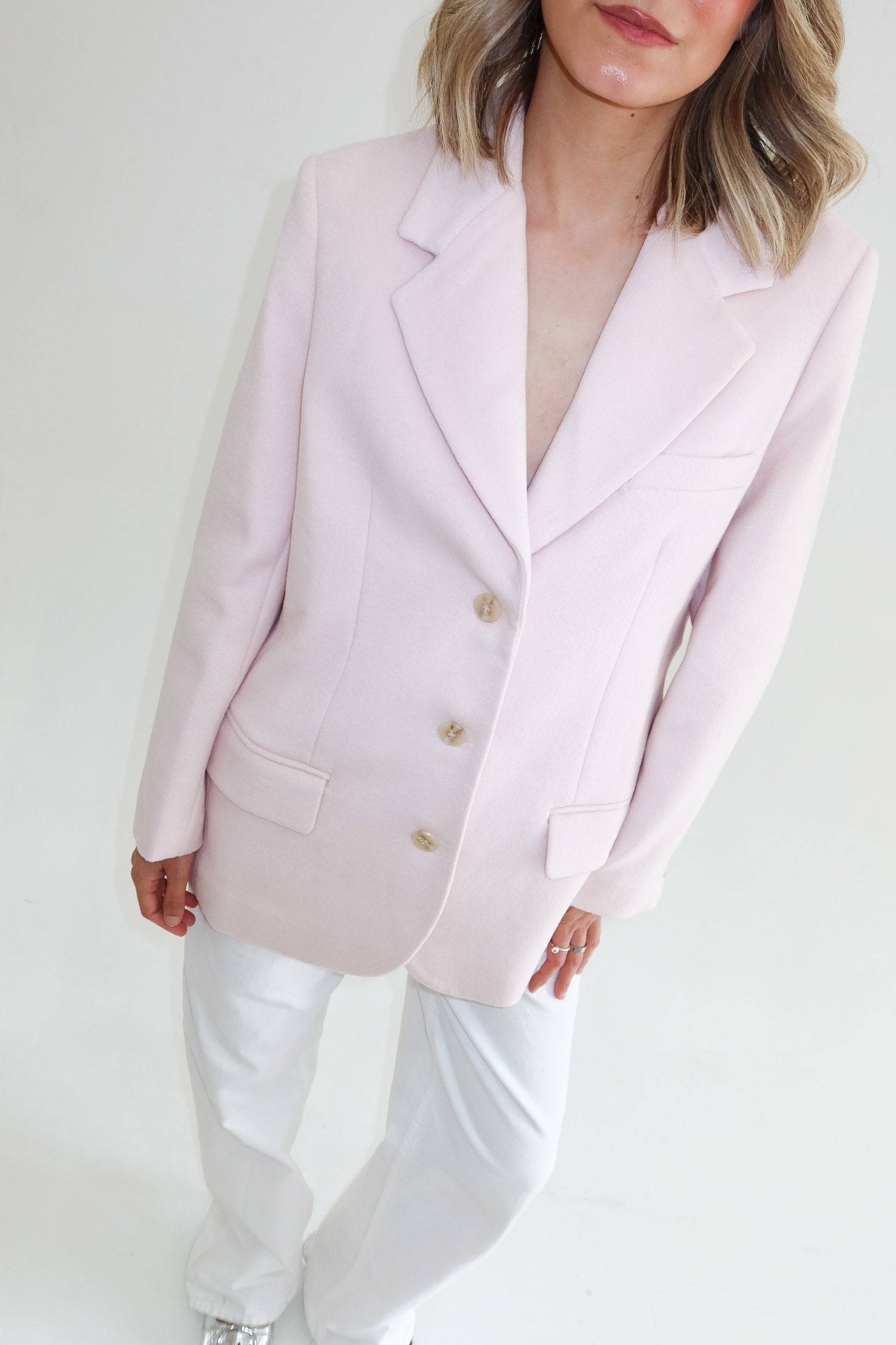 Introducing the Larissa Blazer, your essential blazer for this Autumn/Winter season. Crafted from a luxurious wool blend, it creates a soft, feminine silhouette fit for any and all any occasion’s. This oversized blazer effortlessly keeps you looking chic while staying warm and cozy; versatile enough to pair back with your favourite pieces in your wardrobe.