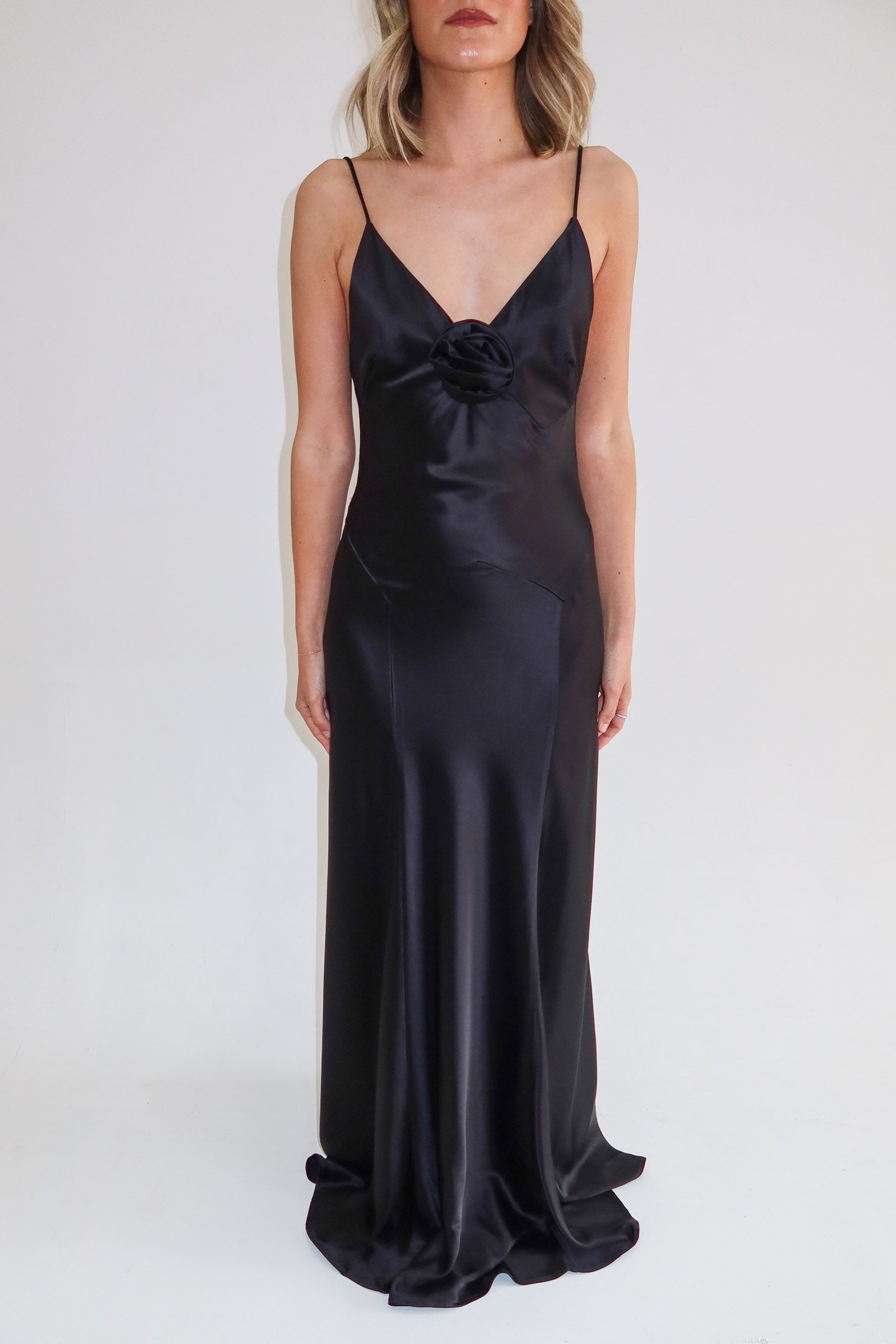 The Savannah Rosette Gown exudes a classic elegance. The dress features a deep v neckline and rosette detailing at the centre front and back. Designed to be fitted at the bust and hips before falling into a relaxed fit through the bias cut skirt, creating a timeless look. The perfect dress for your bridesmaids or wedding guest outfit.